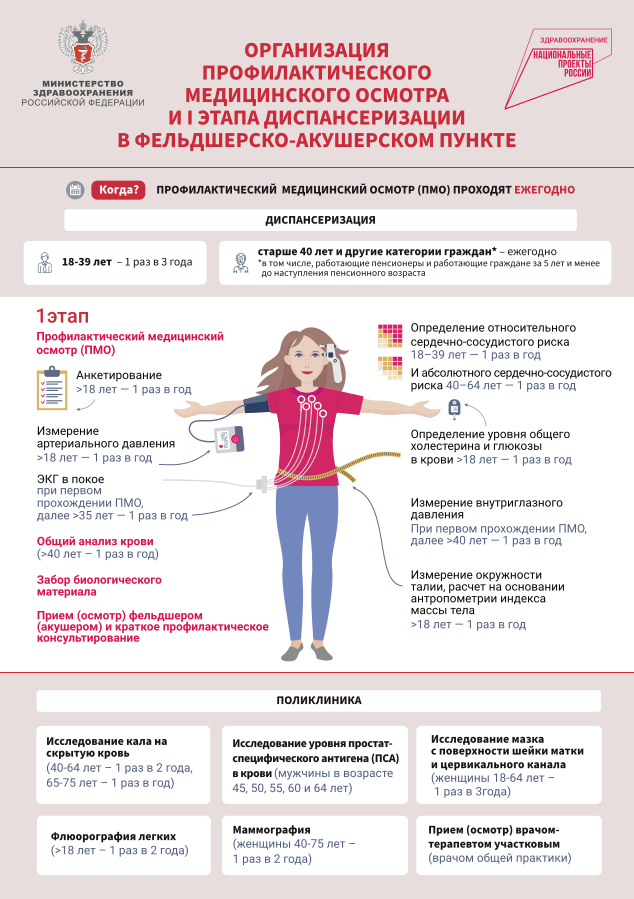 Ряд обследований первого этапа диспансеризации проводится в зависимости от возраста и пола.