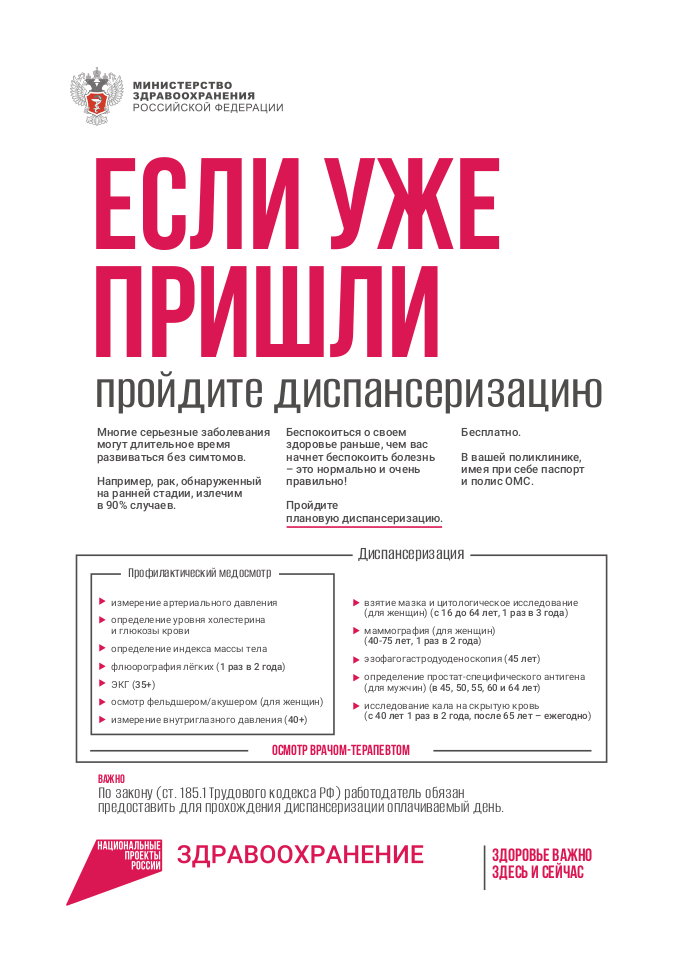Диспансеризация проводиться 1 раз в 3 года путем углубленного обследования состояния здоровья граждан в 2 этапа.